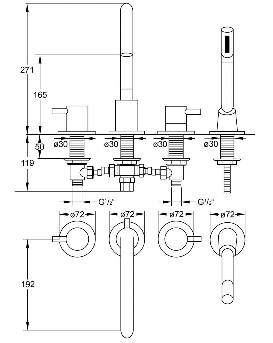 4-gats badrand combinatie Steinberg100 met uitloop en omsteller