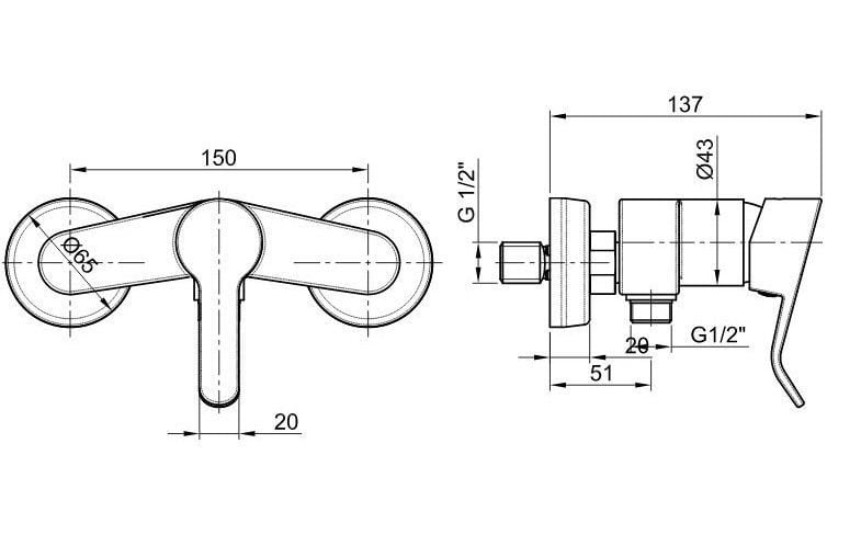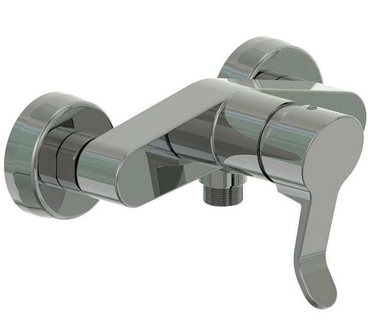De RVS douche mengkraan Adrofite met mooie aparte haakse lijnen.