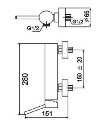 De bediening van de douche mengkraan Luxos zit aan de rechterkant