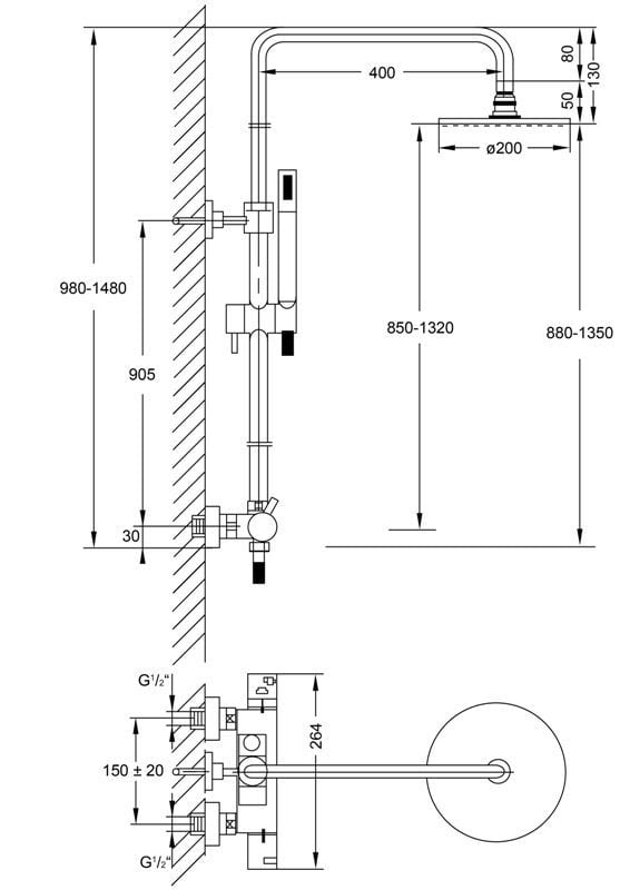 - Metalen regendouche 20 cm
