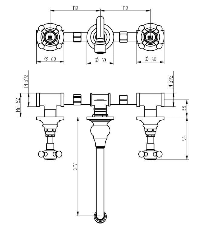 Edwards 3-gats klassieke inbouw wastafelkraan