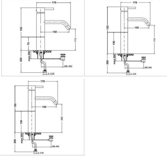 In diversen hoogtes te verkrijgen (dus voor diverse soorten waskommen geschikt).