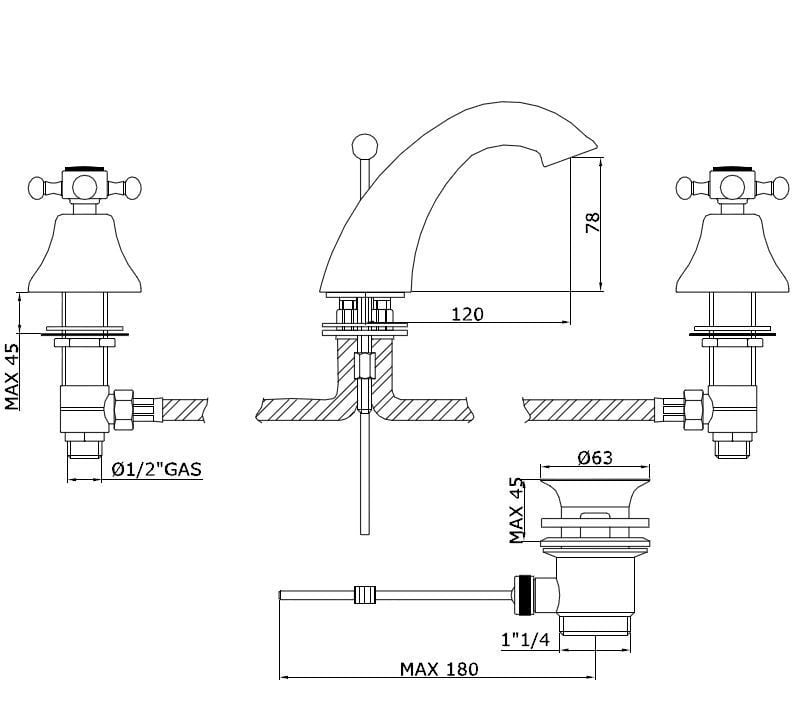 Nostalgische Duetto wastafel mengkraan met 2 separate klassieke knoppen